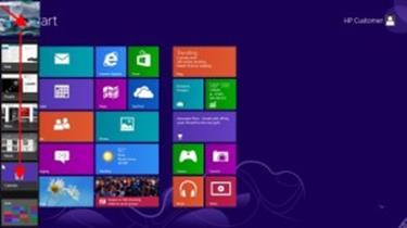 เลื่อนเมาส์ไปที่มุมด้านซ้ายบนเพื่อแสดงภาพย่อของแอพก่อนหน้านี้ จากนั้นคลิกเมาส์ลงไปที่ขอบด้านซ้ายของหน้าจอเพื่อแสดงภาพย่อของแอพที่เปิดไว้ คลิกขวาที่ภาพย่อเพื่อปิดแอพ