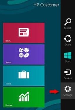 Settings charm – ใช้ Settings charm เพื่อปรับแต่งคอมพิวเตอร์ในรูปแบบที่ต้องการ เช่น ปรับระดับเสียงหรือความสว่าง เลือกประเภทแป้นพิมพ์ เรียกใช้ค่าปรับตั้ง PC และปิดคอมพิวเตอร์ได้โดยเลือกรายการเพียงไม่กี่ขั้นตอน