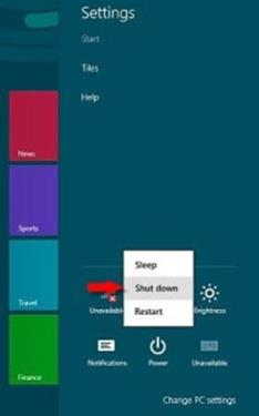 การปิดเครื่องใน Windows 8 โดยทำตามขั้นตอนต่อไปนี้