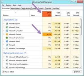 Windows 8 มีการเรียก Task Manager แบบเร่งด่วนเหมือนกับของ Windows7 โดยกดคีย์ Ctrl+Shift+Esc แต่ตัว Task Manager ใน Windows 8 จะแสดงผลที่ระเอียดกว่า