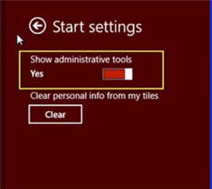 ในการใช้ฟังก์ชั้นสูงๆโดยเข้าใช้แบบง่ายๆใน Windows8 วิธีที่ง่ายในการแสดง Administrative tools ที่หน้า Start ได้ เพียงกดคีย์ลัด Windows + I คลิกที่ Tiles จากนั้นเลือกที่ Show administrative tools ให้เป็น Yes