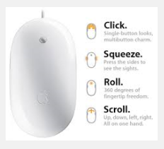 Apple Mouse :เดิมคือ Mighty Mouse เป็นเมาส์แบบมีสายเป็นตัวแรกในการรองรับการคลิกขวา