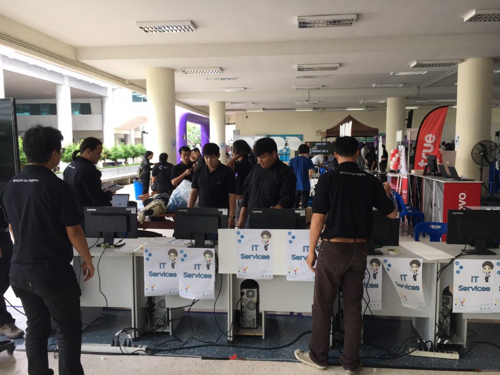 วันที่ 21-22 กรกฎาคม 2560 กลุ่มงานเครือข่ายคอมพิวเตอร์และการสื่อสารจัดเตรียมบูธ IT service สำหรับบริการนักศึกษาเรื่อง IT และ QR code ที่ใช้ในการร่วมกิจกรรมภายในงาน และจัดเตรียมอุปกรณ์กระจายสัญญาณ wireless 8 จุดเพื่อบริการเครือข่ายอินเทอร์เน็ตให้นักศึกษาทั่วบริเวณลานชั้น 1 อาคารพร้อมมงคล ศูนย์พณิชยการพระนคร