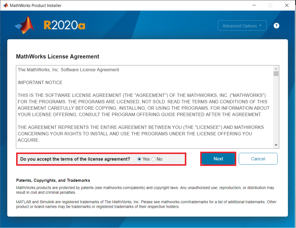 4. หน้าต่างข้อตกลง License Agreement ในตำแหน่ง Do you accept the terms of the license agreement ? ตอบ Yes จากนั้นกด Next