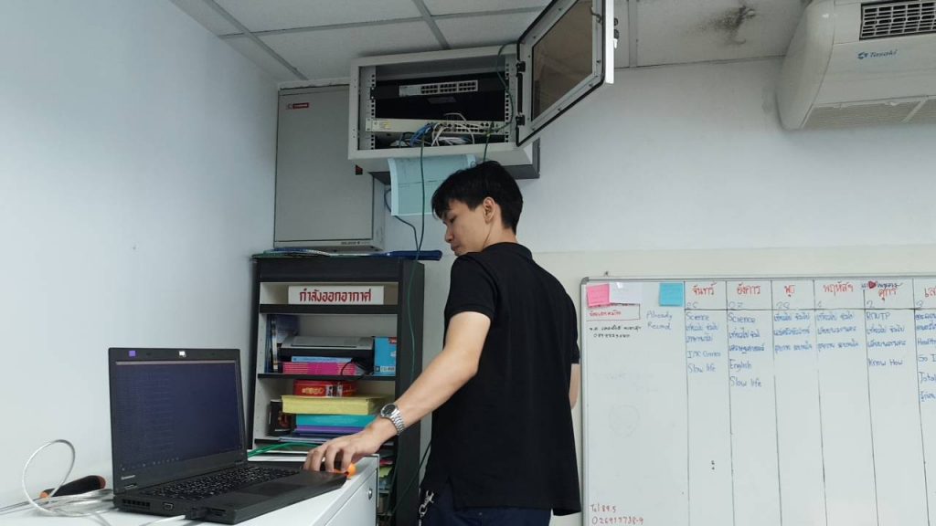 เดินสายแลนเครื่องแม่ข่าย ณ ห้องสถานีวิทยุเพื่อการศึกษา
