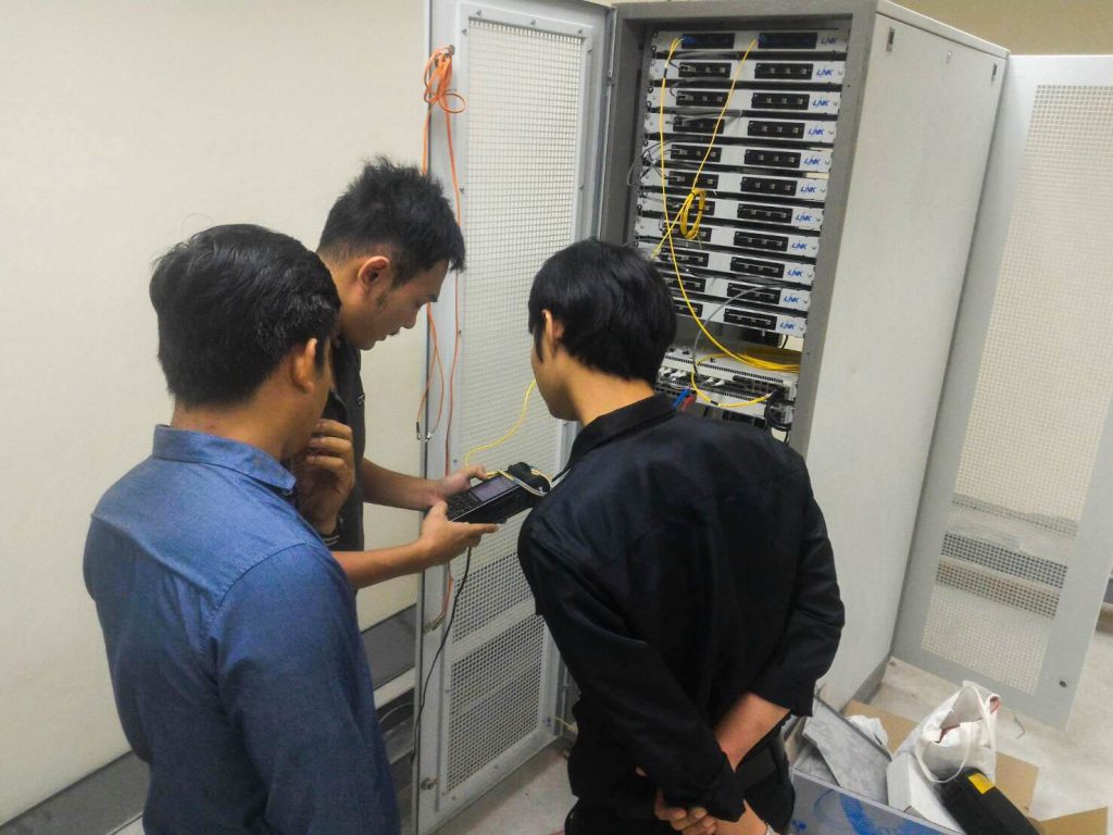 เจ้าหน้าที่กลุ่มงานเครือข่ายคอมพิวเตอร์และการสื่อสารดำเนินการตรวจสอบความเรียบร้อยเครือข่ายภายในอาคารใหม่(อาคารเอนกประสงค์ งบประมาณ 2557-2559) ศูนย์เทเวศร์ ทั้งจุดเครือข่ายแบบสายและไร้สาย รวมไปถึงระบบกล้องวงจรปิดภายในตัวอาคาร ให้พร้อมใช้งานก่อนรับมอบอาคาร