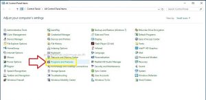 - ไปที่ control panel แล้วเลือก programs and features